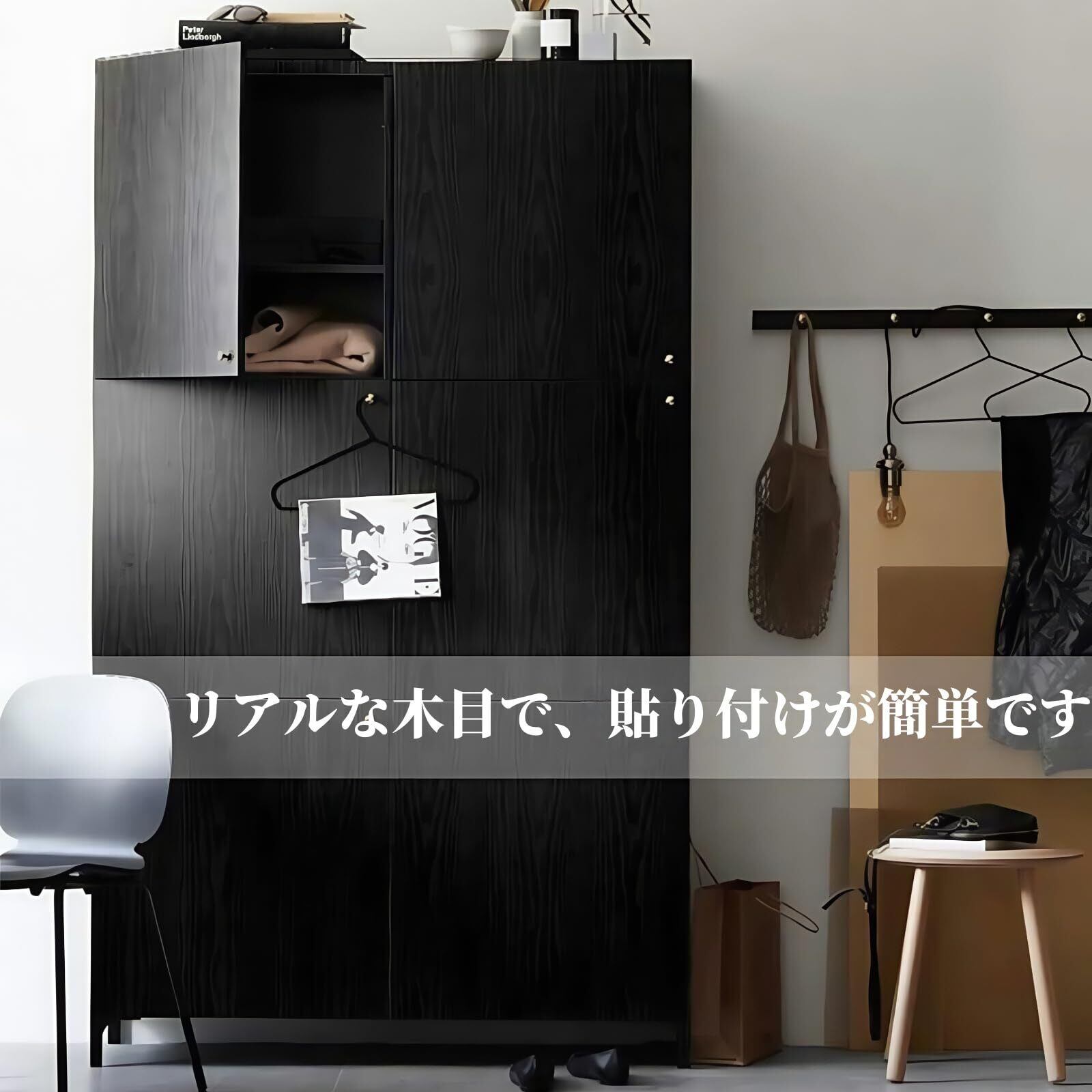 木目シート【多用途】ブラック壁紙シールは低予算で古い家具を素早く改装します。 キッチンカウンター、家具、ノートパソコン、引き出し、ワードローブ、ドア、壁など、どんな滑らかで平らな、汚れない表面にも使えます。 複数の用途があり、異なるニーズを満たすことができます! この製品は、凹凸のある表面や粗い壁には適していません