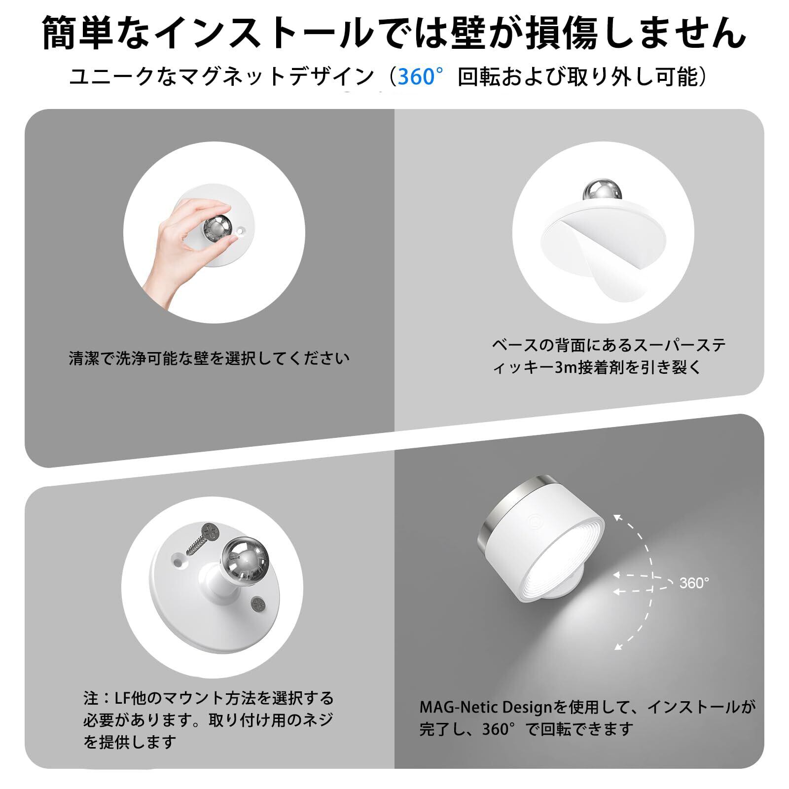 【より強力なマグネット、360°自由に回転するマグネットボール】マグネットウォールライトの構造を最適化するために、より強力なマグネットを採用しました。 壁掛けライト 工具不要、1秒で壁から取り外せます。また、ワイヤレススポットライトをマグネットブラケットから簡単に取り外して充電したり、ポータブルライトとして様々な場所で使用できます。