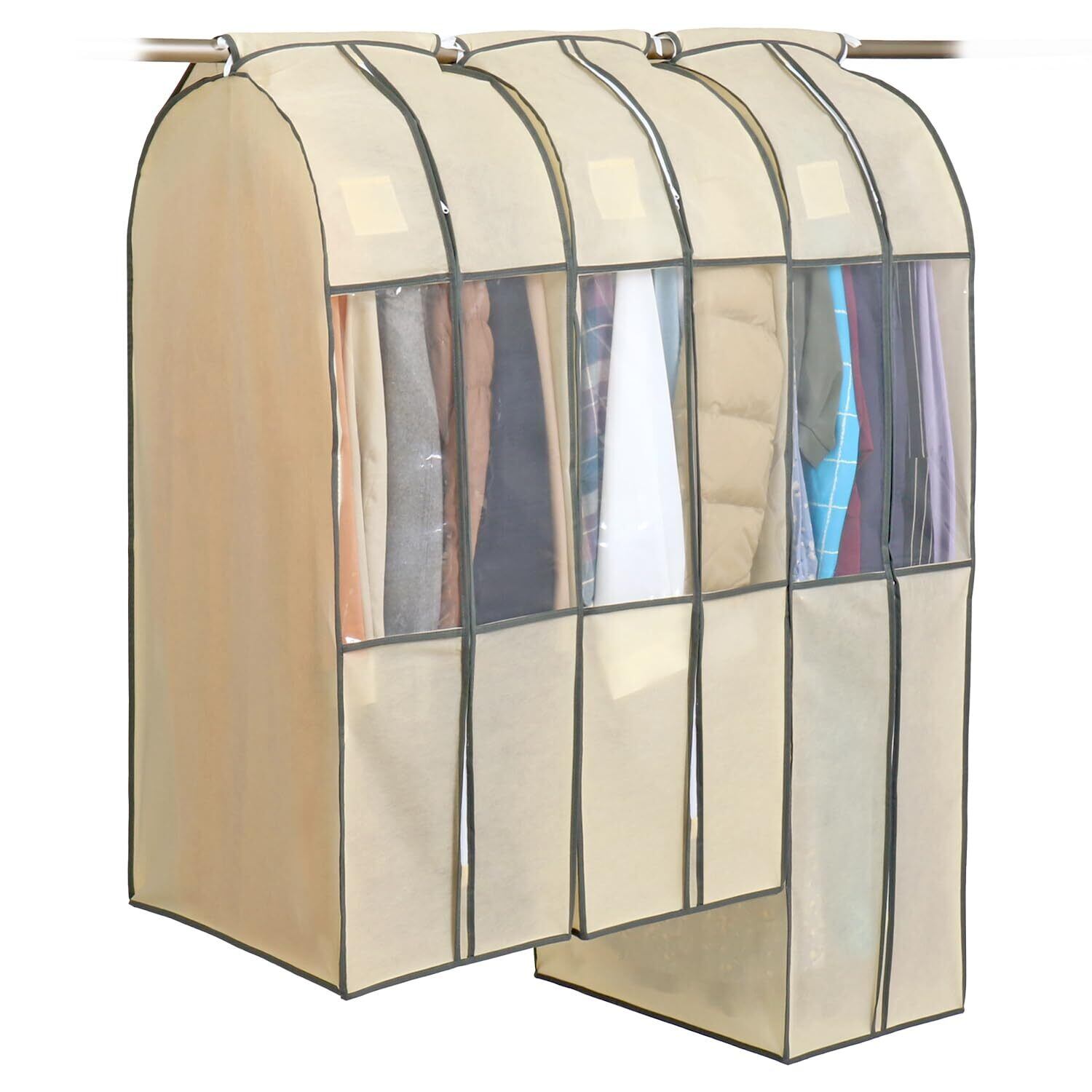 【在庫処分】アストロ 衣類カバー 3枚組 (ショートサイズ2枚&ロングサイズ1枚) 35cmのマチ付き 吊り下げたまま使えるゆったりシワになりにくいマチ付き洋服カバー 通気性の良い不織布がホコリなどの汚れをガード スーツカバー コートカバー 衣装カバー 吊り下げ収納 ベージュ 600-22