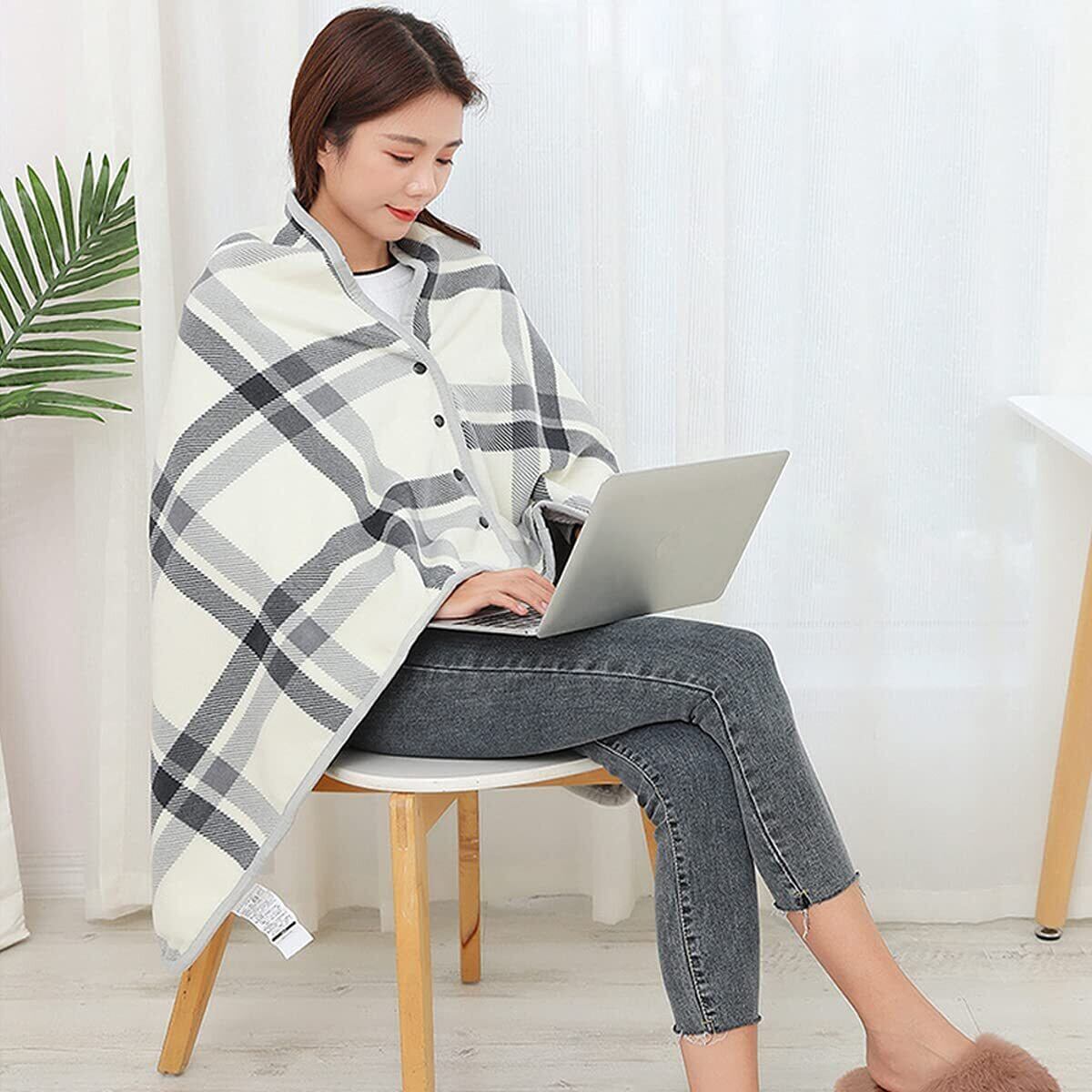 【多機能なブランケット】サイズ:80 × 130cm (±5cm)、下半身をすっぽりと覆えます、肩掛けとしても使。2種類の色の選択:オフホワイト、青い。おしゃれできれいです、男女兼用のタイプで。手洗いまたは、洗濯機で洗えます。