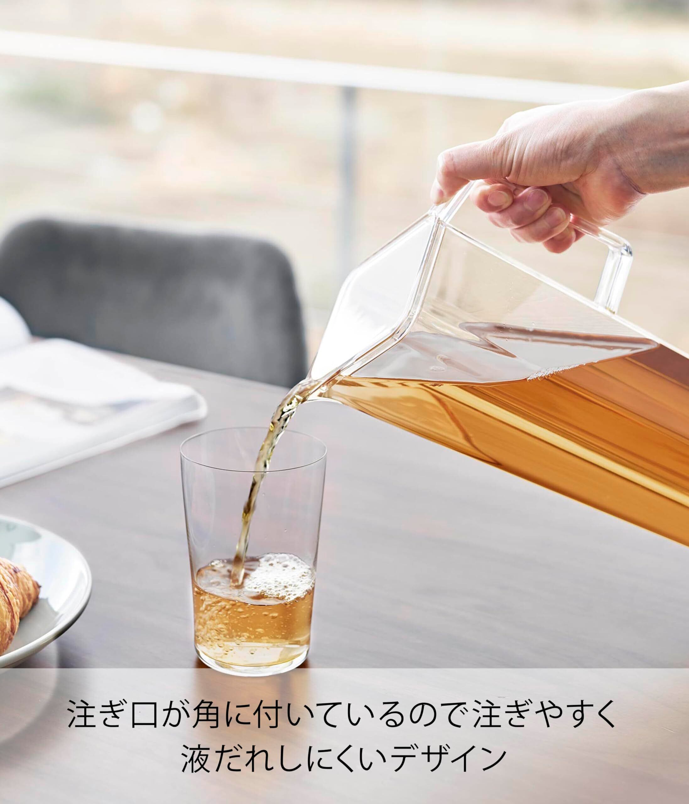 注ぎ口が角に付いているので注ぎやすく、液だれしにくいデザイン。