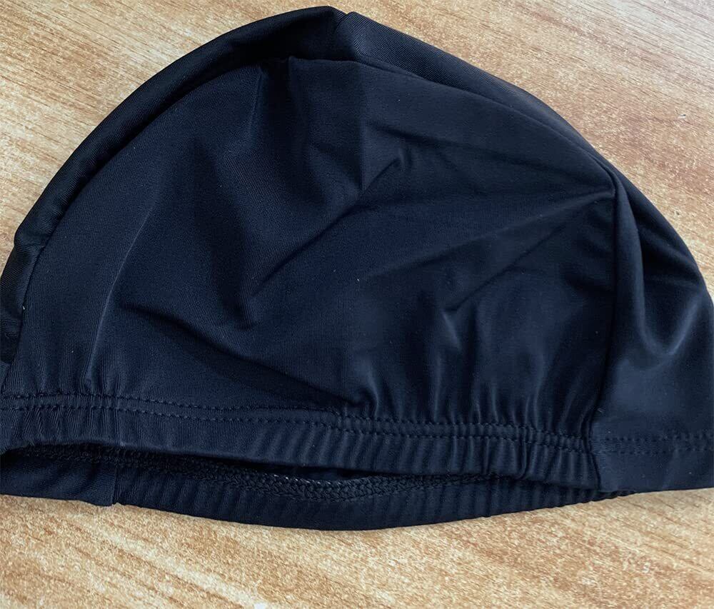【使い方は簡単です】シンプルな無地でどんな水着にも合わせやすい、スイミングプールに必須のスイムキャップ。ロングヘアーもスッポリおさまり、とても楽に脱げます。