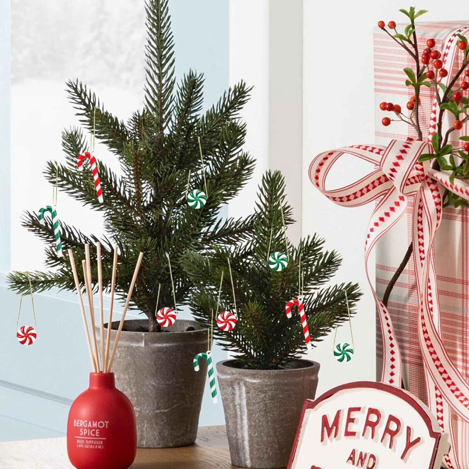 【素材】クリスマスキャンディオーナメントは品質良いプラスチックでできており、壊れにくく、軽量で耐久性があり、繰り返して使用可能です。