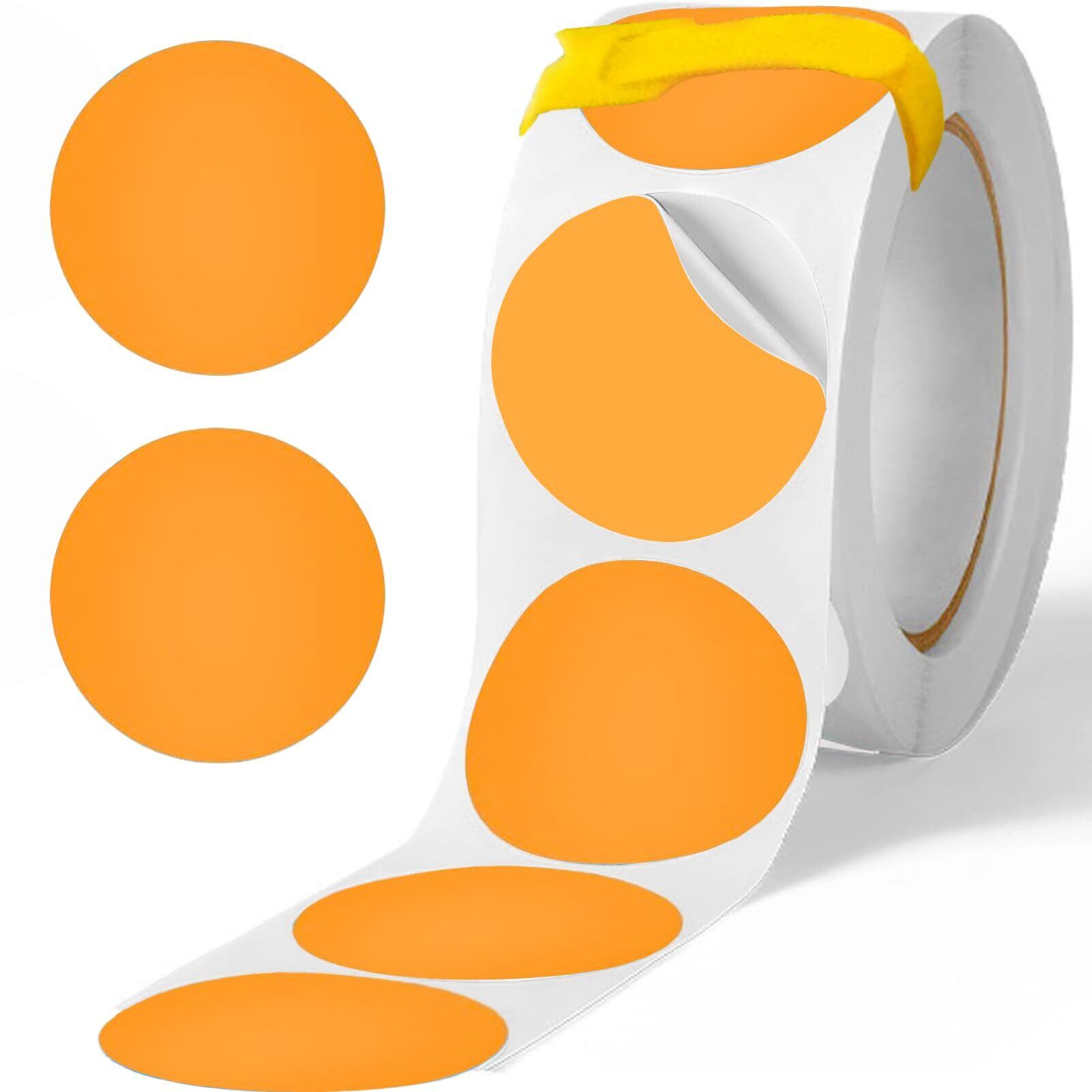 カラーラベル 丸型 丸シール500枚入 マジック式結束バンド1本 大容量 ロール ステッカー 円形シール ラベルシール アート光沢ラベル (オレンジ, 5CM)