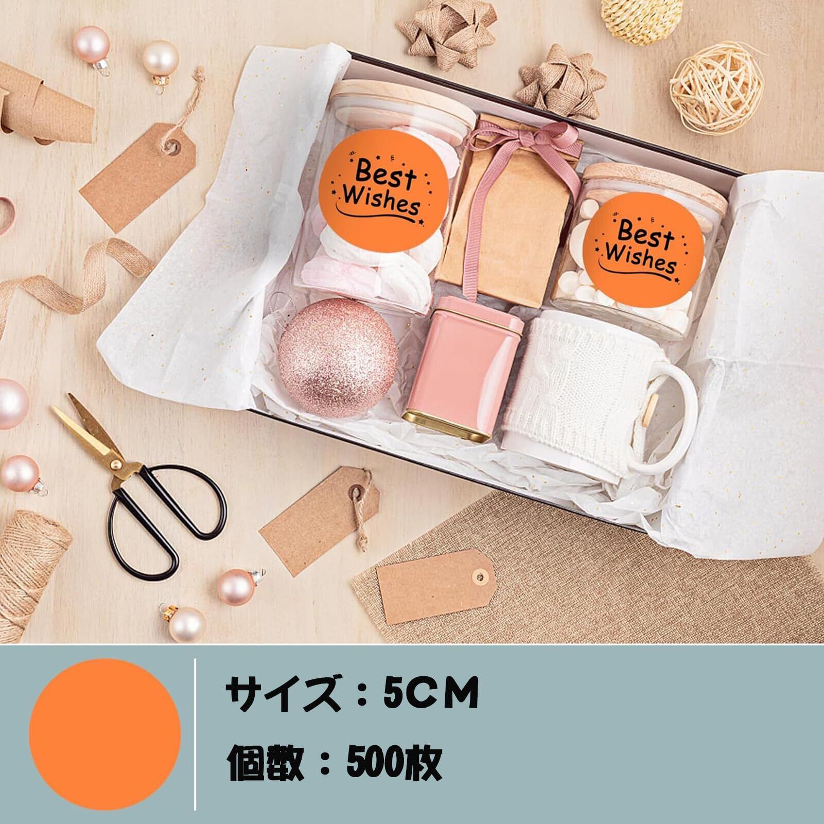【特価商品】カラーラベル 丸型 丸シール500枚入 マジック式結束バンド1本 大容量 ロール ステッカー 円形シール ラベルシール アート光沢ラベル (オレンジ, 5CM)