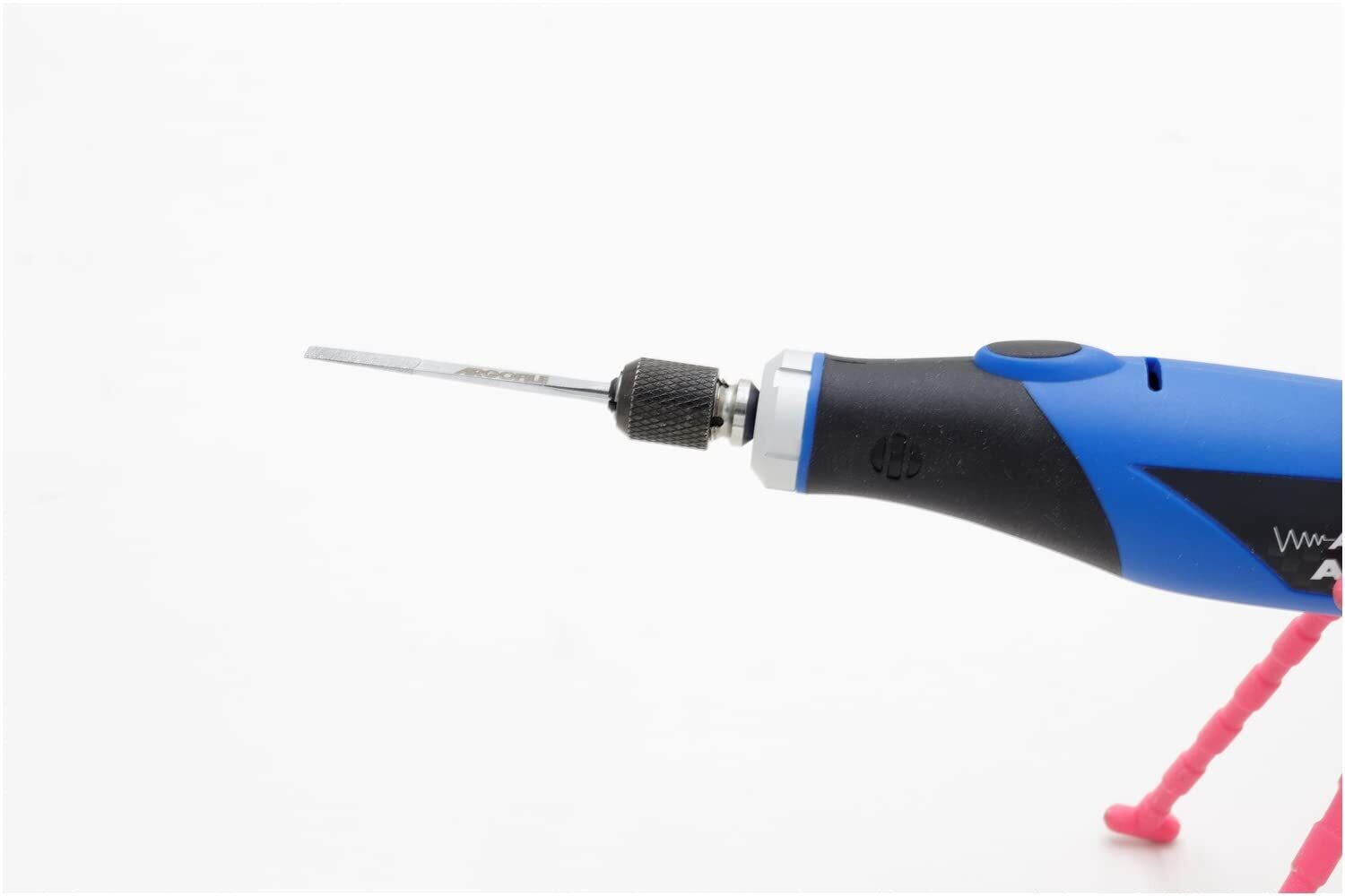 テーパー電着ダイヤモンドヤスリ 「DTファイル」 を電動ストロークサンダー アルティマシリーズに取り付けて使用できるようアレンジしました。繊細な箇所のヤスリ掛けに紙・布ヤスリの貼り替えなしに使えます。番手も、#200、#400、#600 と3種類ラインナップ。先端厚:0.3mm、幅:3.0mmと繊細な箇所のヤスリ掛けに対応。側面にもダイヤ砥粒が電着されているので、縦に取り付けてのヤスリ掛けもできます。 (取り付けには3.0Φコレットパーツが必要です。)