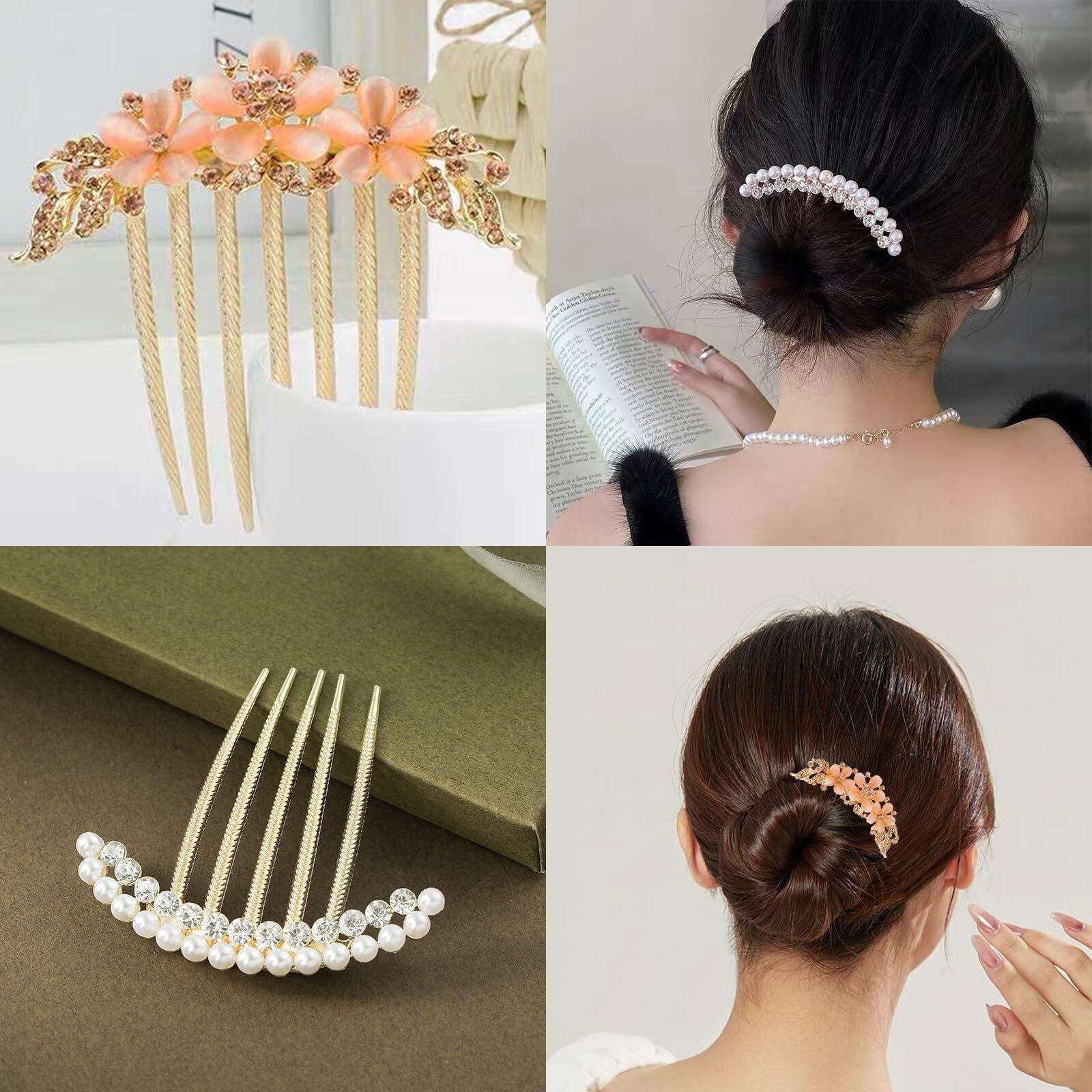 【堅牢で軽量】良質な真珠、ドリルで作られています。曲がりにくいので、濃密な髪にぴったりです。すべてのタイプのヘアに適用されます。高品質の合金歯は安全にその場に維持され、髪を最適な状態に保つことができます。