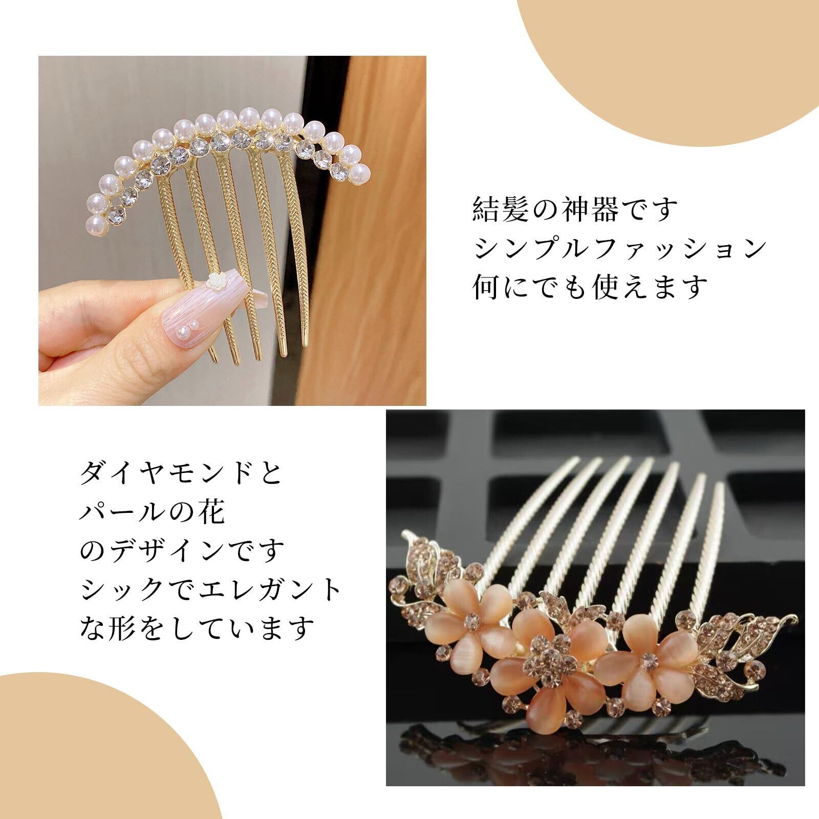 ヘアアクセサリー【2点セット】夜会巻きコーム 髪飾り 髪留め パール ヘアコーム キラキラ ヘアアク ヘアコームヘアアレンジ 盛り髪 バレンタインデー 卒業式 結婚式 和装 着物 成人式