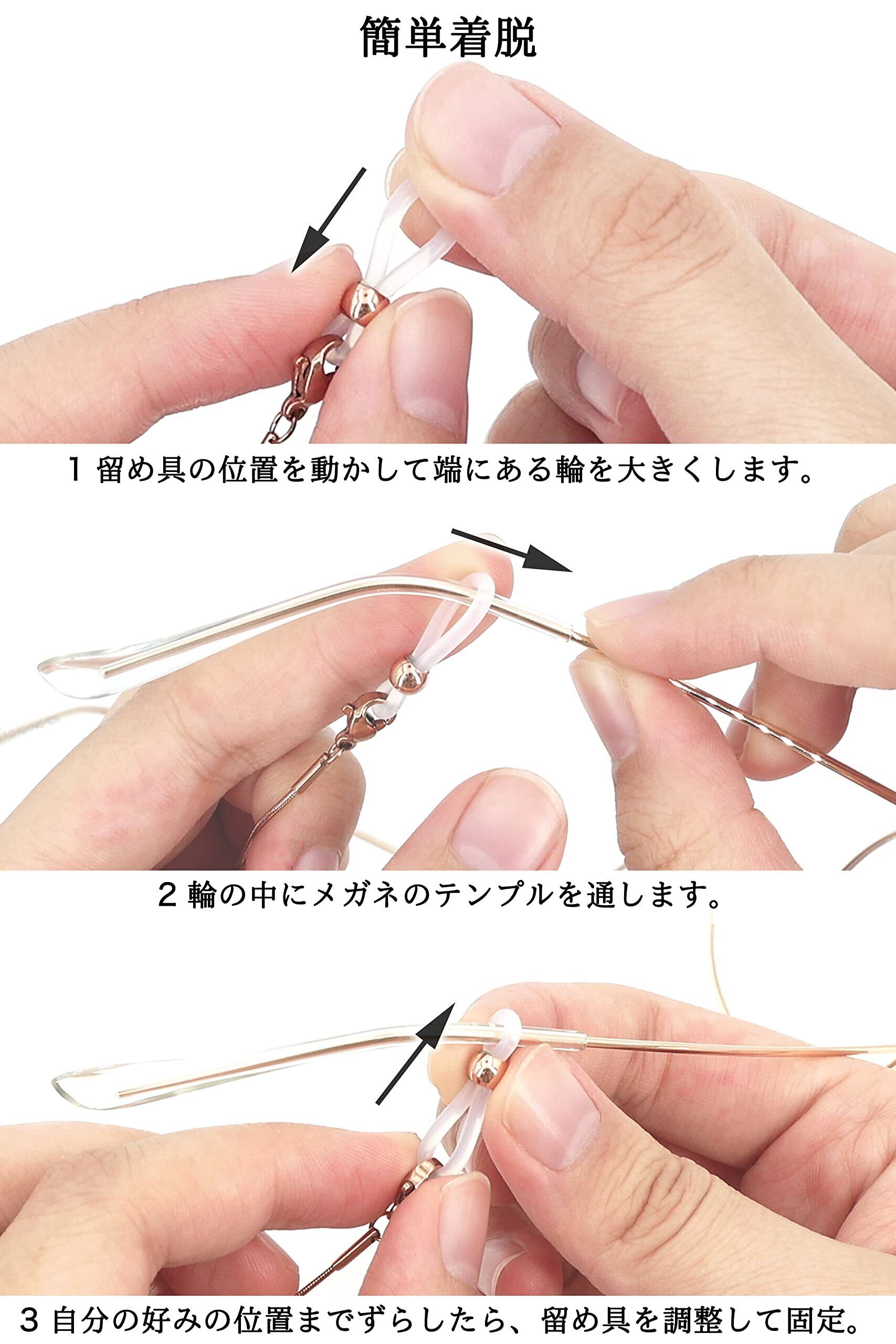 【便利な4WAY仕様】❶ファッションなネックレスのように眼鏡を首から下げておけるため、眼鏡の紛失予防にも役立ちます。❷Bluetooth イヤホンの落下や紛失を予防できます。❸先端のシリコンリングは取り外しができ、マスクストラップとしても使用できます。❹ネックレス・ブレスレットとしても使用できます。