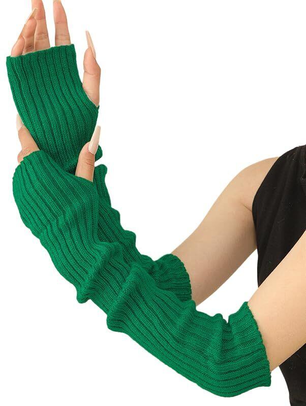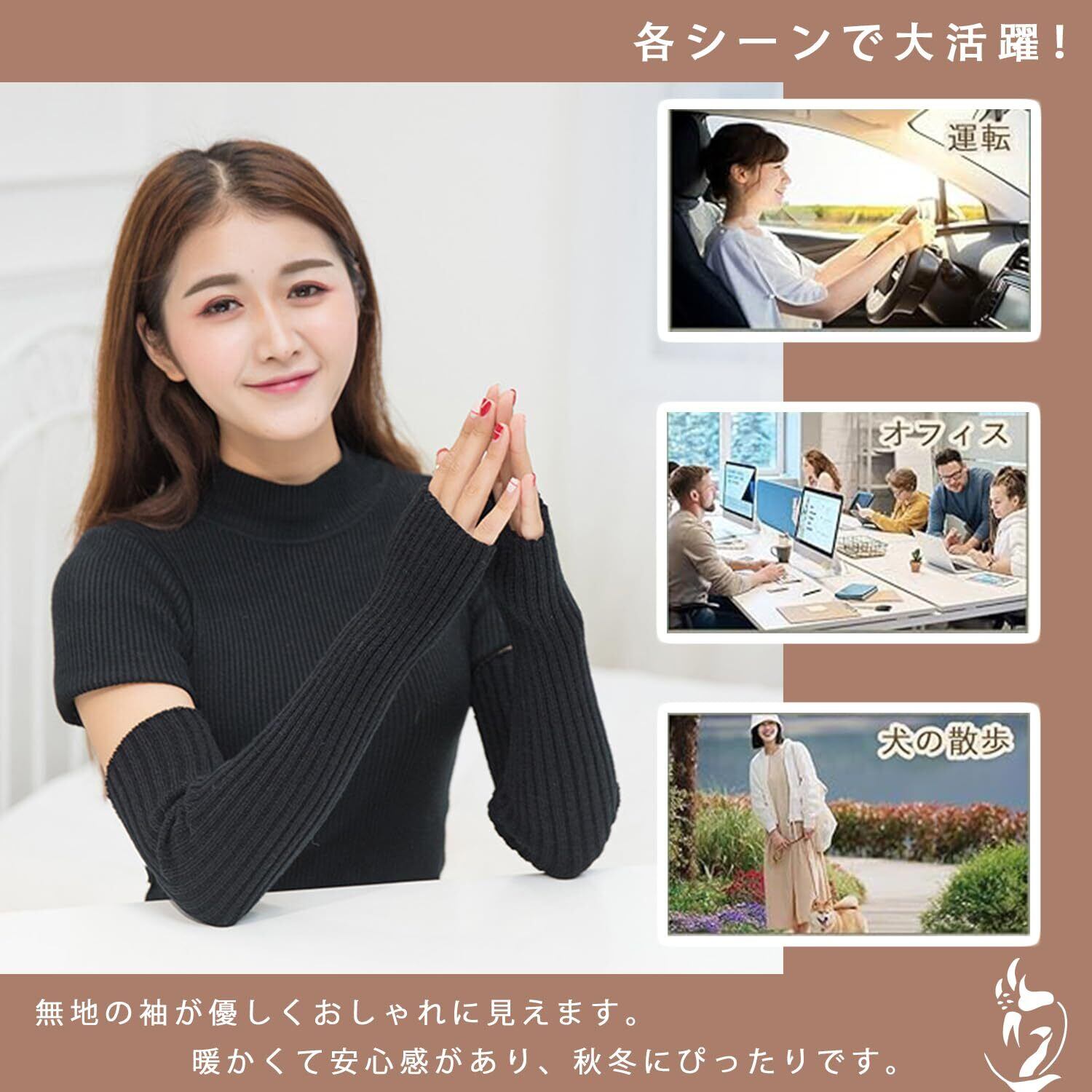 [Ekieta] アームウォーマー アームカバー ロング y2k 防寒 日焼け止め ニット リストウォーマーカバー おしゃれ 無地 指掛けタイプ 秋冬 地雷系