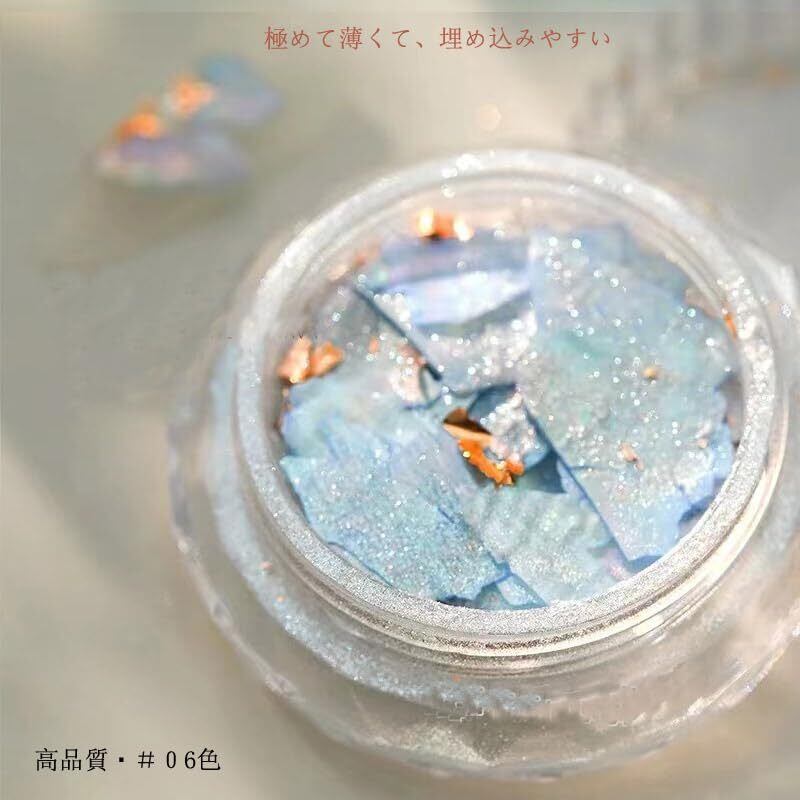 シェル 貝殻 天然 シェル ネイルパーツ 6色6個入り 3dネイルデコレーション ネイルパール メタルパーツ ネイルスタッズ ネイルアートキット ジェルネイル UVレジンアクセサリー レジン用 パーツ(青空色)