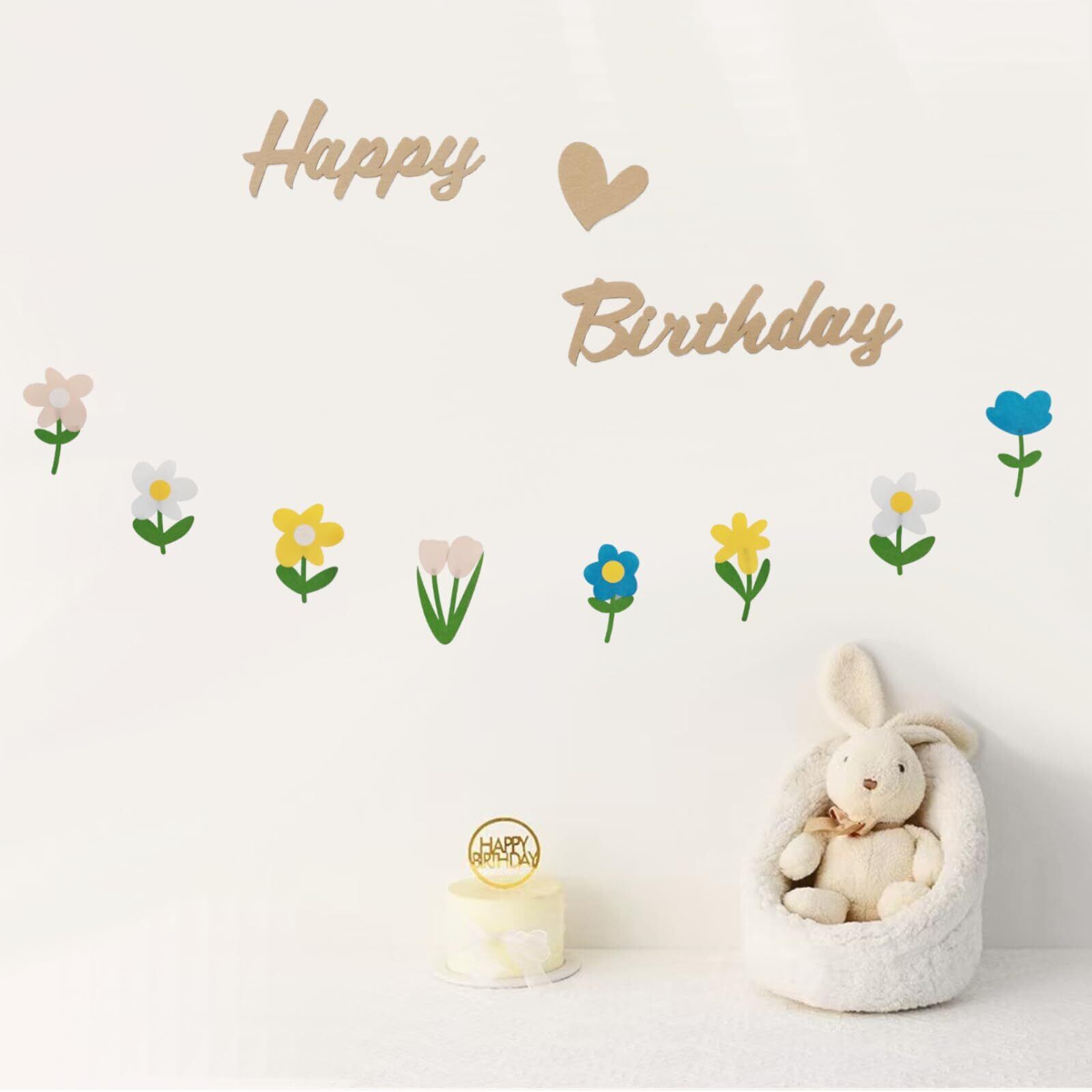 フラワー 1歳 2歳 3歳 4歳 誕生日 飾り付け レターバナー 誕生日 飾り バースデー 飾り フェルト製 フラワ ガーランド バースデー 飾り付けセット シンプル飾り 男の子 女の子 記念日 おうちスタジオ (HAPPY BIRTHDAY)