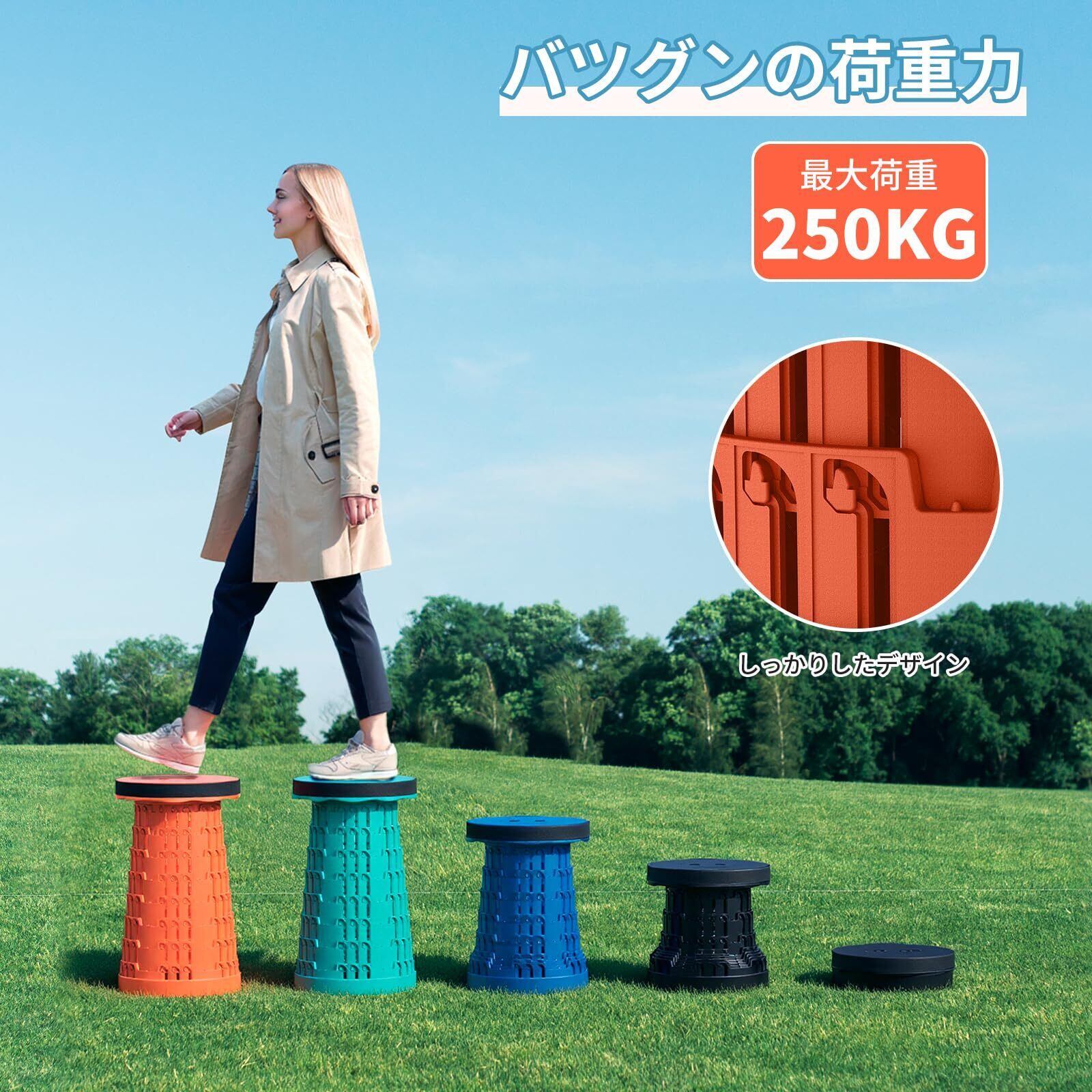 【在庫セール】LEEKEY 折りたたみ椅子 7-45cm高さ調節 アウトドアチェア 折り畳み椅子 耐荷重 250kg 超軽量 コンパクト 折りたたみ踏み台 室内 一秒開閉できる 伸縮式 持ち運び便利 防水 アウトドア キャンプ チェア 携帯 スツール 低い 風呂/釣り/フェス/運動会/観戦/屋内/屋外用オ オレンジ