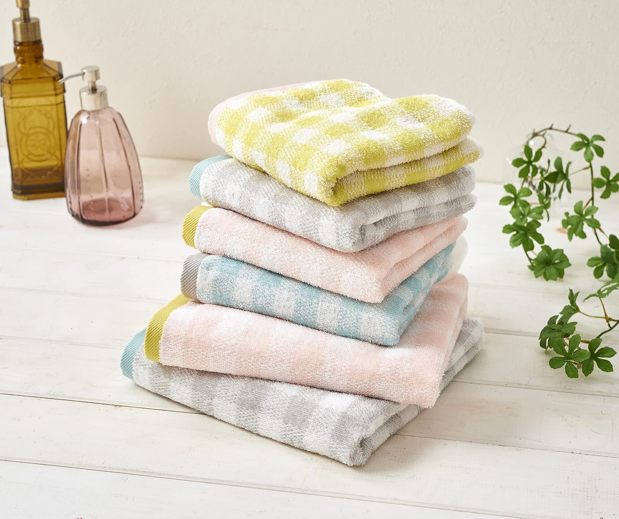 Kosugizen ミニバスタオル クレールチェック 2色各1枚入 50×100㎝ 小さなサイズのバスタオル デイリーユース 2枚セット SV-485-2