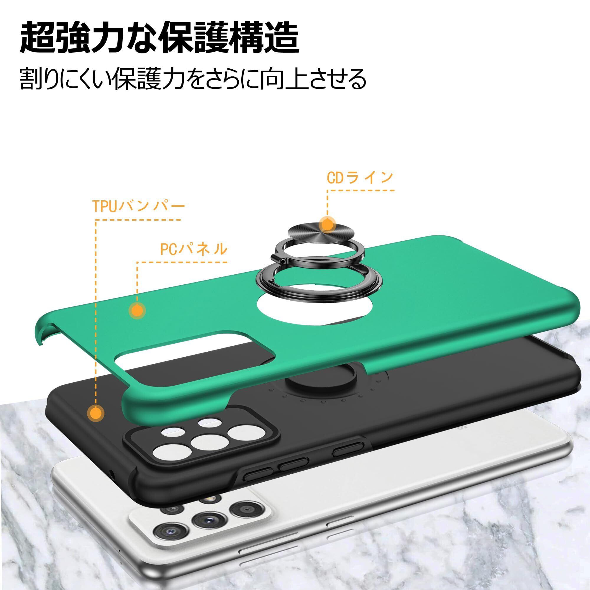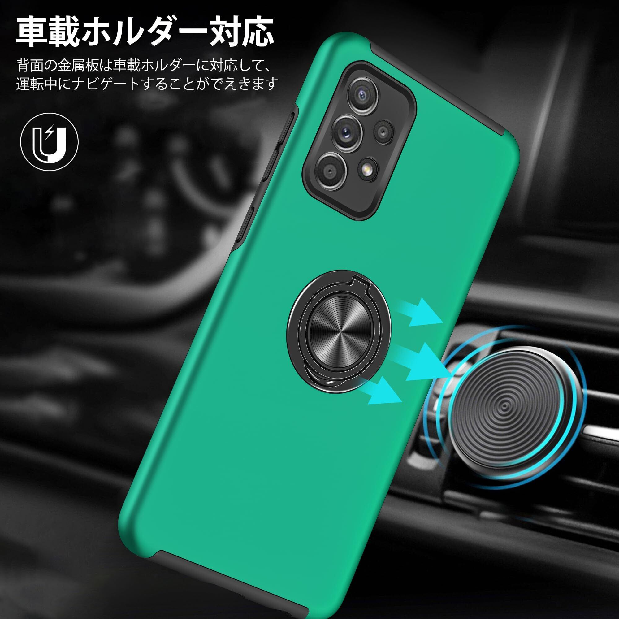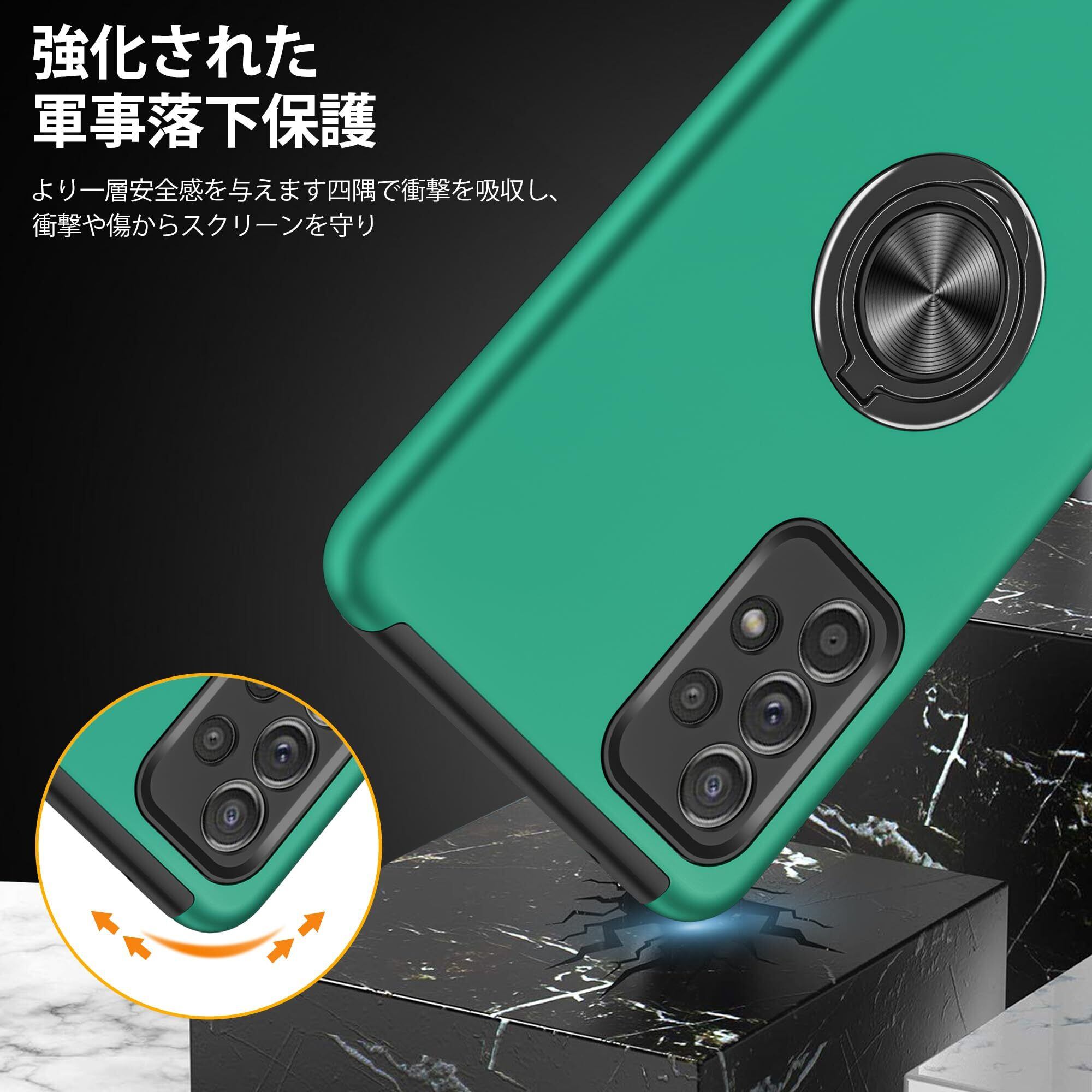 【在庫処分】Galaxy A53 5G 用ケース リング付き 耐衝撃 tpu pc 二重構造 SC-53C SCG15 ケース 全面保護 サムスン ギャラクシーa53 5g 用カバー 衝撃吸収 シリコン 360°回転 スタンド機能 薄型 車載ホルダー対応 米軍MIL規格 指紋防止 人気 携帯カバー 緑 ZW75-115