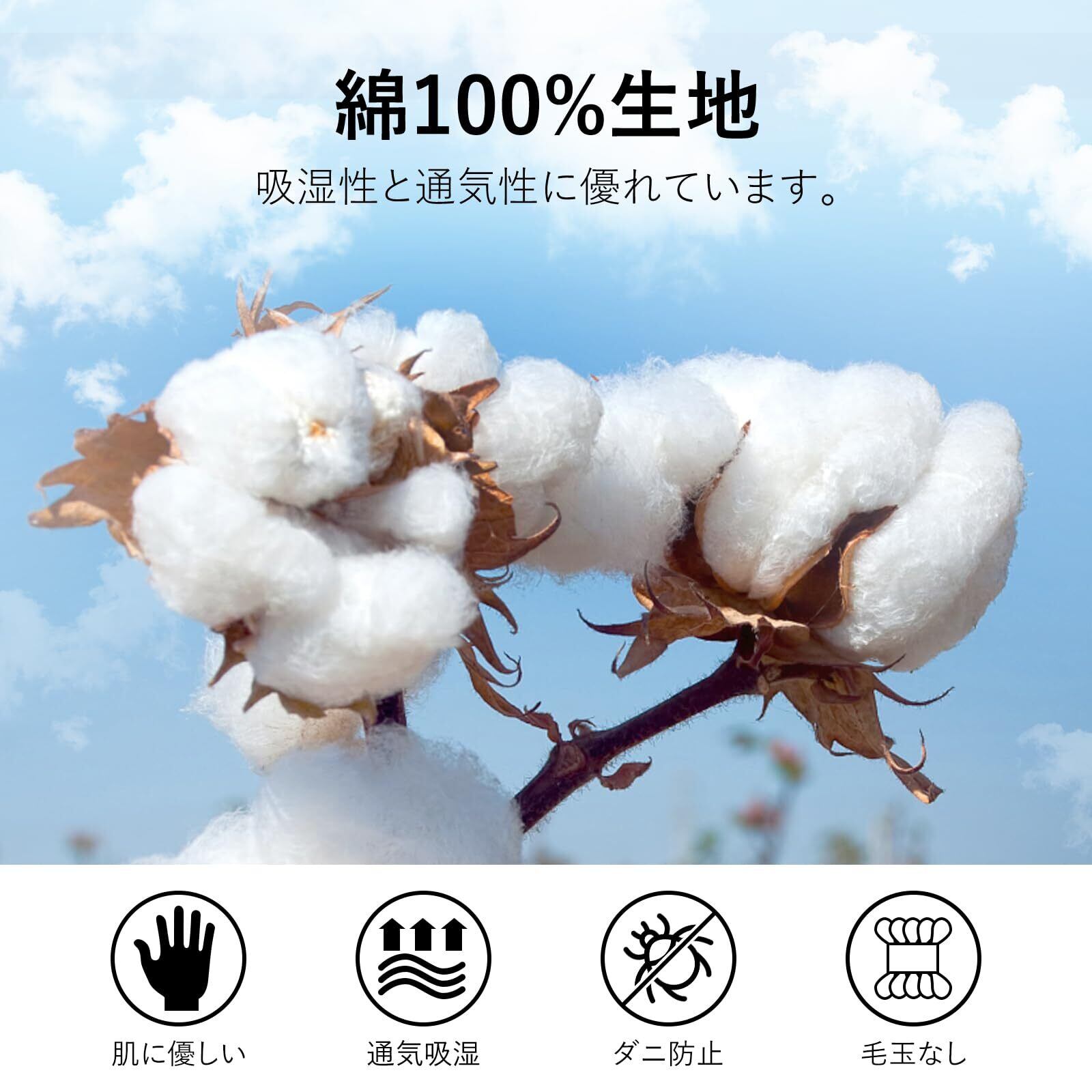 【綿100%】Huibaoまくらカバーは天然素材コットンで作られており、生地は快適で柔らかく、耐久性があり、毛玉やダニがつきにくいです。綿自体が吸湿性・通気性に優れており、肌に優しく、とても快適にお休みいただけます。さらに、コットンには抗菌・防臭効果があるため、夏の暑い時期でも、枕カバーをあまり取り替えない冬でも、頭皮の健康を守ることがでます。
