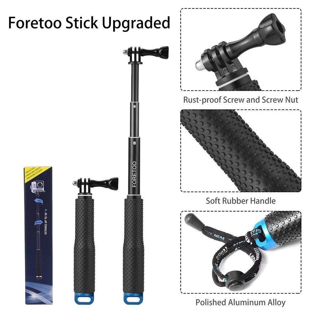 Foretoo (フォートゥー) 自撮り棒 19インチ ハンドグリップ 防水 調節可能 延長一脚ポール Gopro Hero 7 6 5 4 2 1 AKASO Xiaomi Yi SJCAM SJ4000 SJ5000 SJ6000等に対応