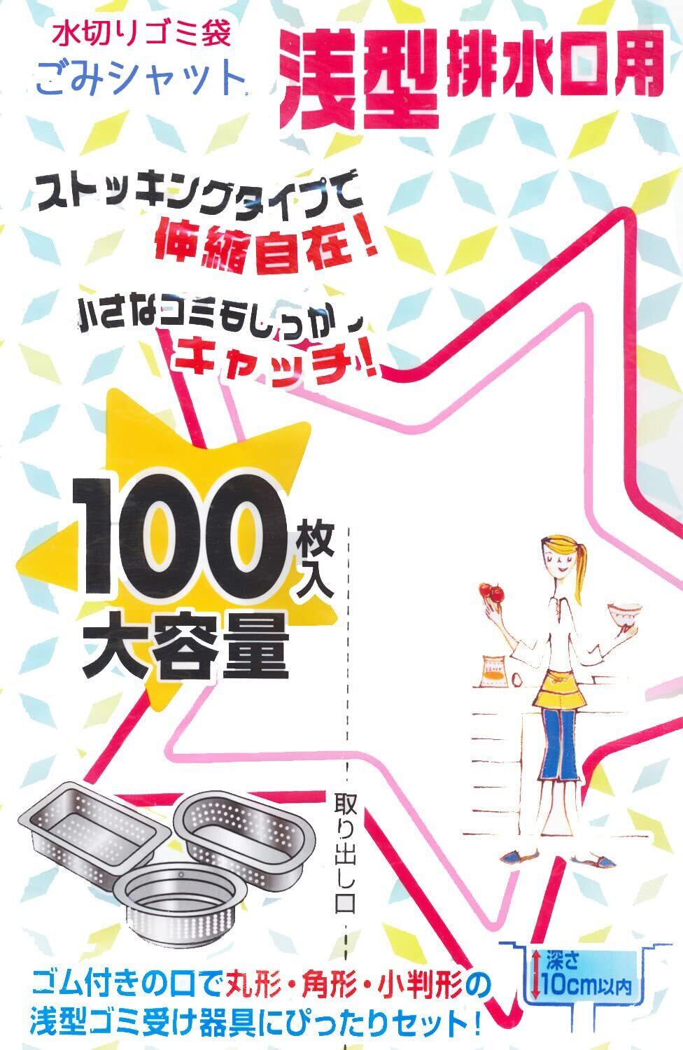 ボンスター 水切りゴミ袋 ごみシャット 浅型排水口用 大容量 100枚入り