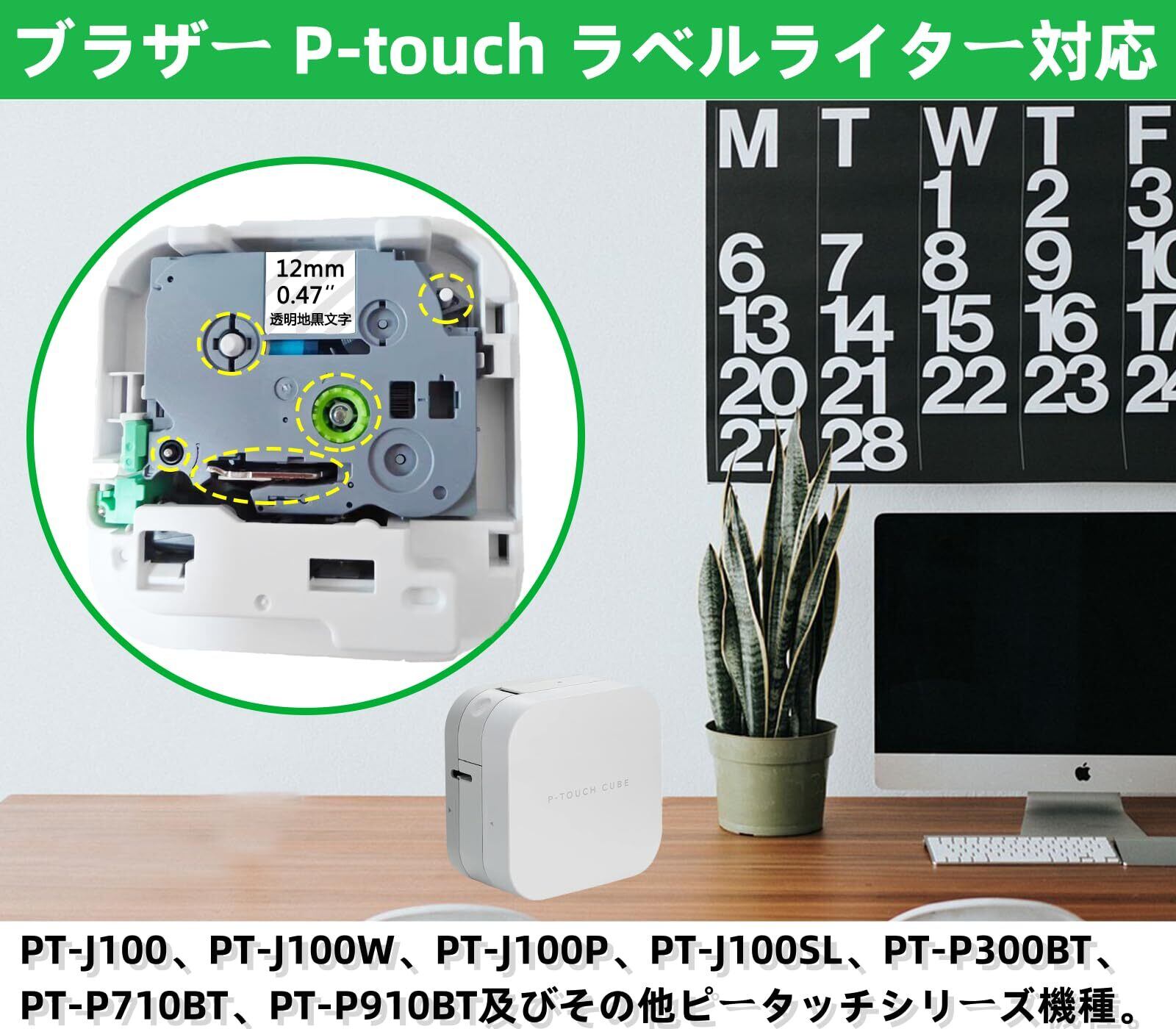【ブラザーp-touchラベルプリンターに対応】PT-J100、PT-J100W、PT-J100P、PT-J100SL、PT-P300BT、PT-P710BT、PT-P910BT、PT-170、PT-160、PT-120、PT-180、PT-250BG、PT-250BY、PT-2500PC、PT-1500PC、PT-PC、PT-240、PT-24、PT-9500PC、PT-9300PC、PT-9200PC、PT-D210、PT-190、PT-12、PT-18N、PT-18R、PT-D600、PT-2730、PT-P700、PT-P750W、PT-2430PC、PT-P900W、PT-P900W、PT-9700PC、PT-9800PCN及びその他ピータッチシリーズ機種。