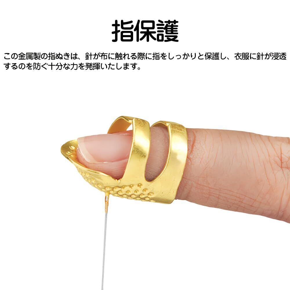 指保護:この金属製の指ぬきは、針が布に触れる際に指をしっかりと保護し、衣服に針が浸透するのを防ぐ十分な力を発揮いたします。