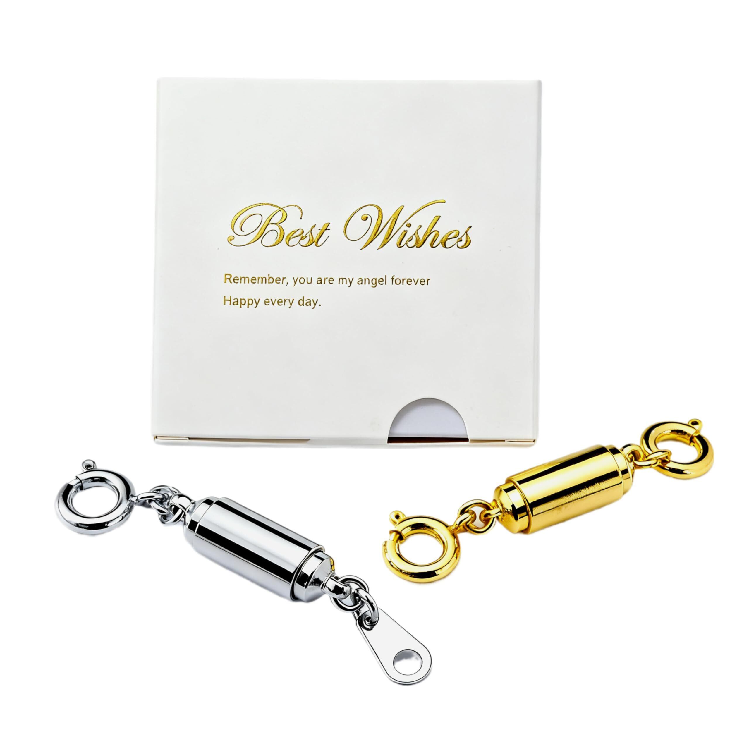 強力な磁気ネックレス留め具2個、ステンレススチール、低アレルギー性、着脱簡単、落下防止、ロック機構、ユニセックス、ゴールドとシルバー