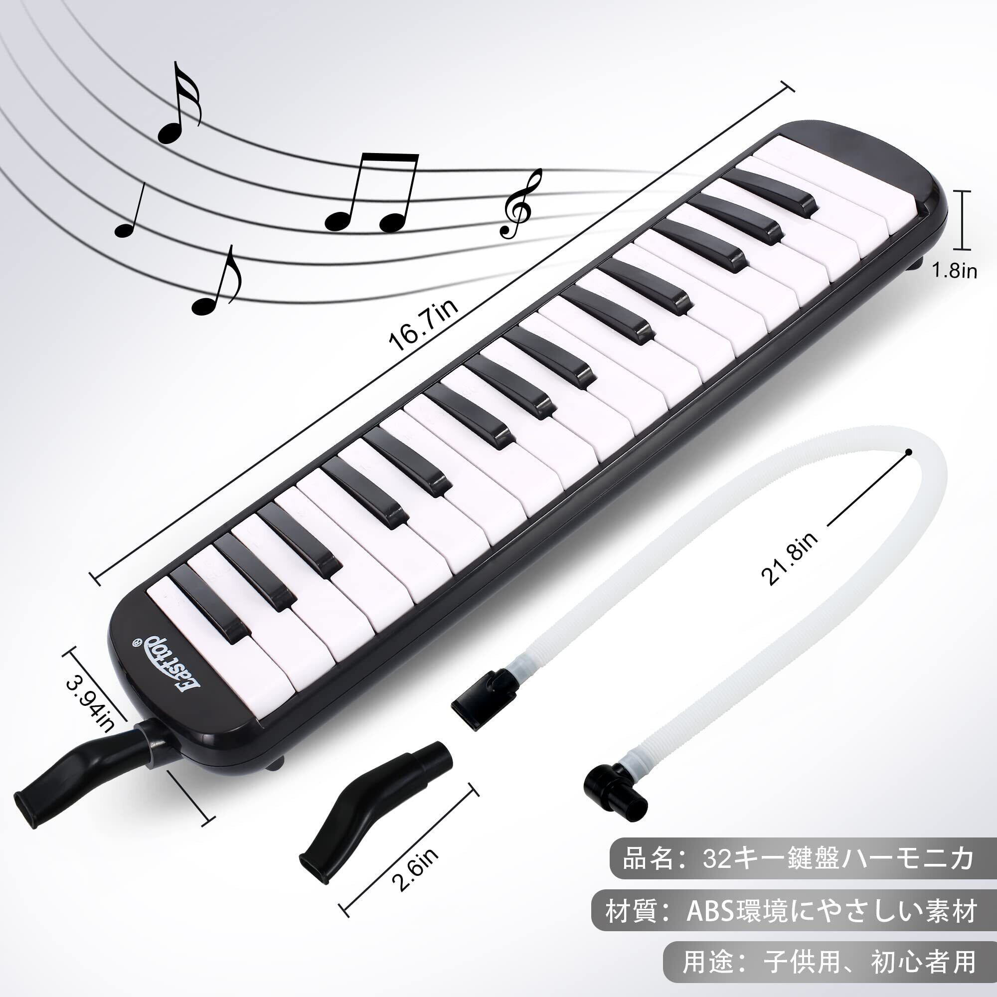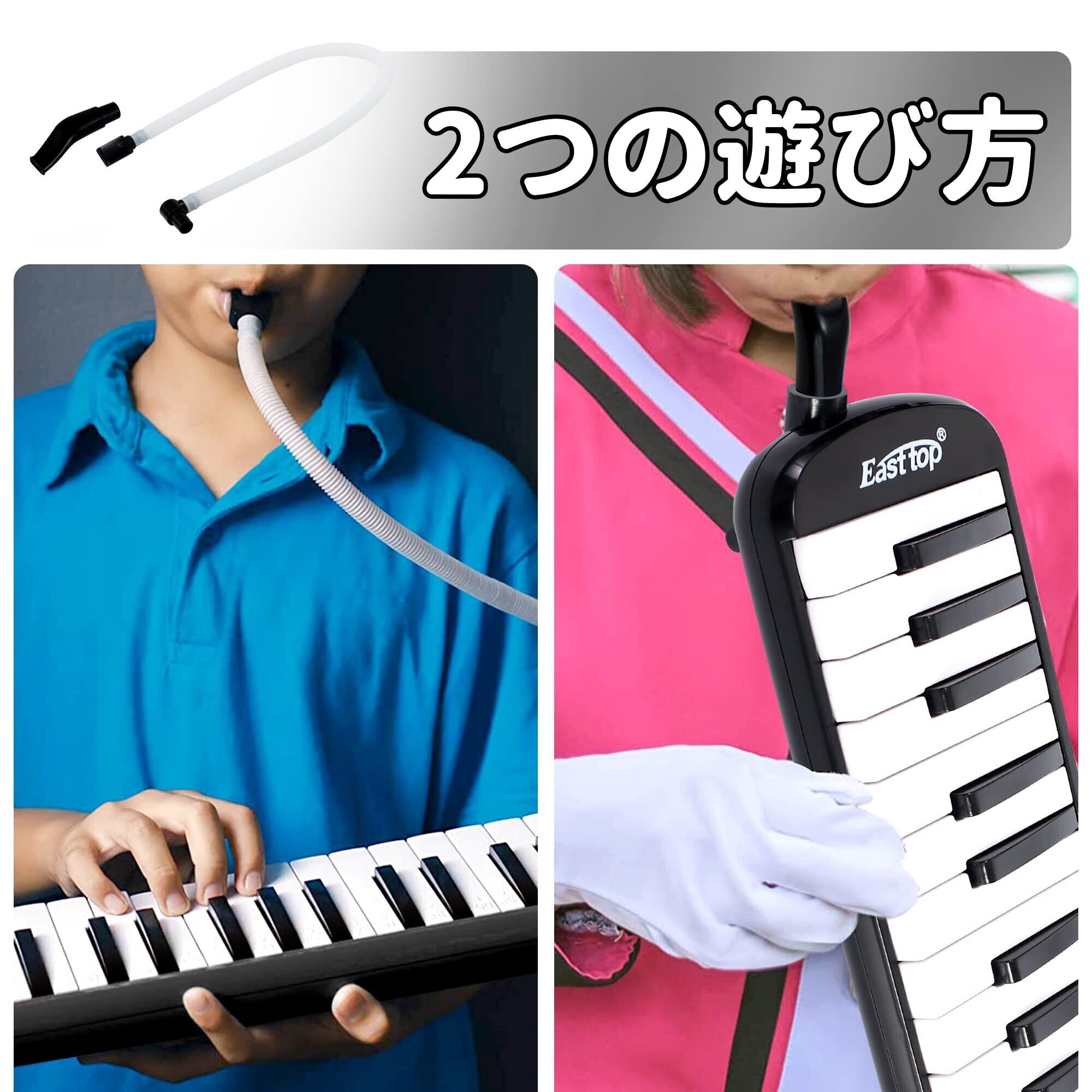 East top 鍵盤ハーモニカ 32鍵 小学生 ピアニカ こども用 軽量 メロディピアノ ふき口 ホース 卓奏 立奏 ケース 付き(Black)