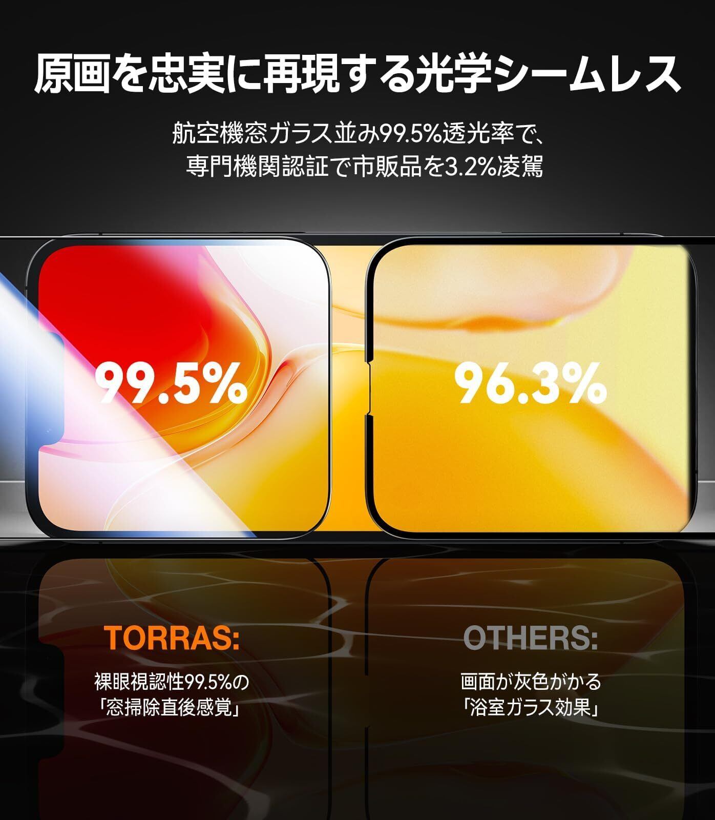 【2022最新】TORRAS フィルム For iPhone 16e ガラスフィルム 航空宇宙ガラス 周り浮きゼロ 9H+硬度 米軍MIL規格 全面保護 10倍強化 極細ベゼル対応 ラウンドエッジ 超簡単貼り付け ワンプル(Just One Pull) ガイド枠付き 気泡レス 指紋防止 サラサラ 落下・破損防止 2枚セット 6.1インチ いphone16e 用 保護フィルム GlassGo Ultra