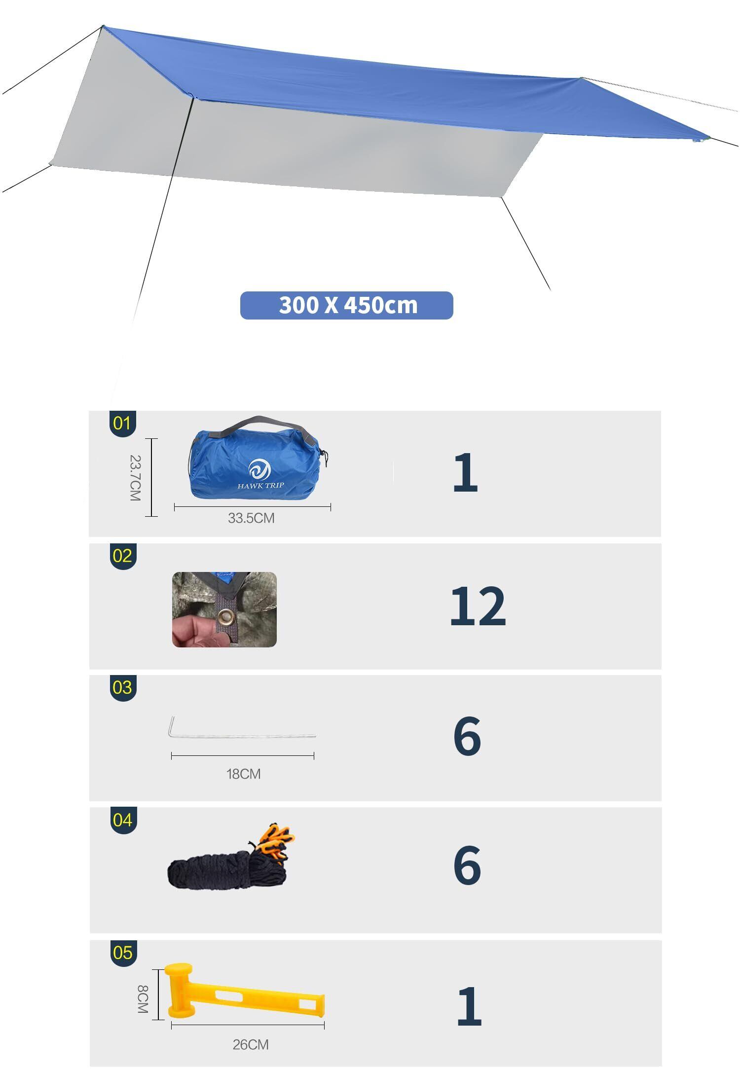 ポータブル多機能タープ キャンプ天幕テント防水棚防水棚軽量 遮熱 遮光 軽量 キャンプ用品リュックサック、トレッキング、ビーチ用 (300*450cm - 青い)