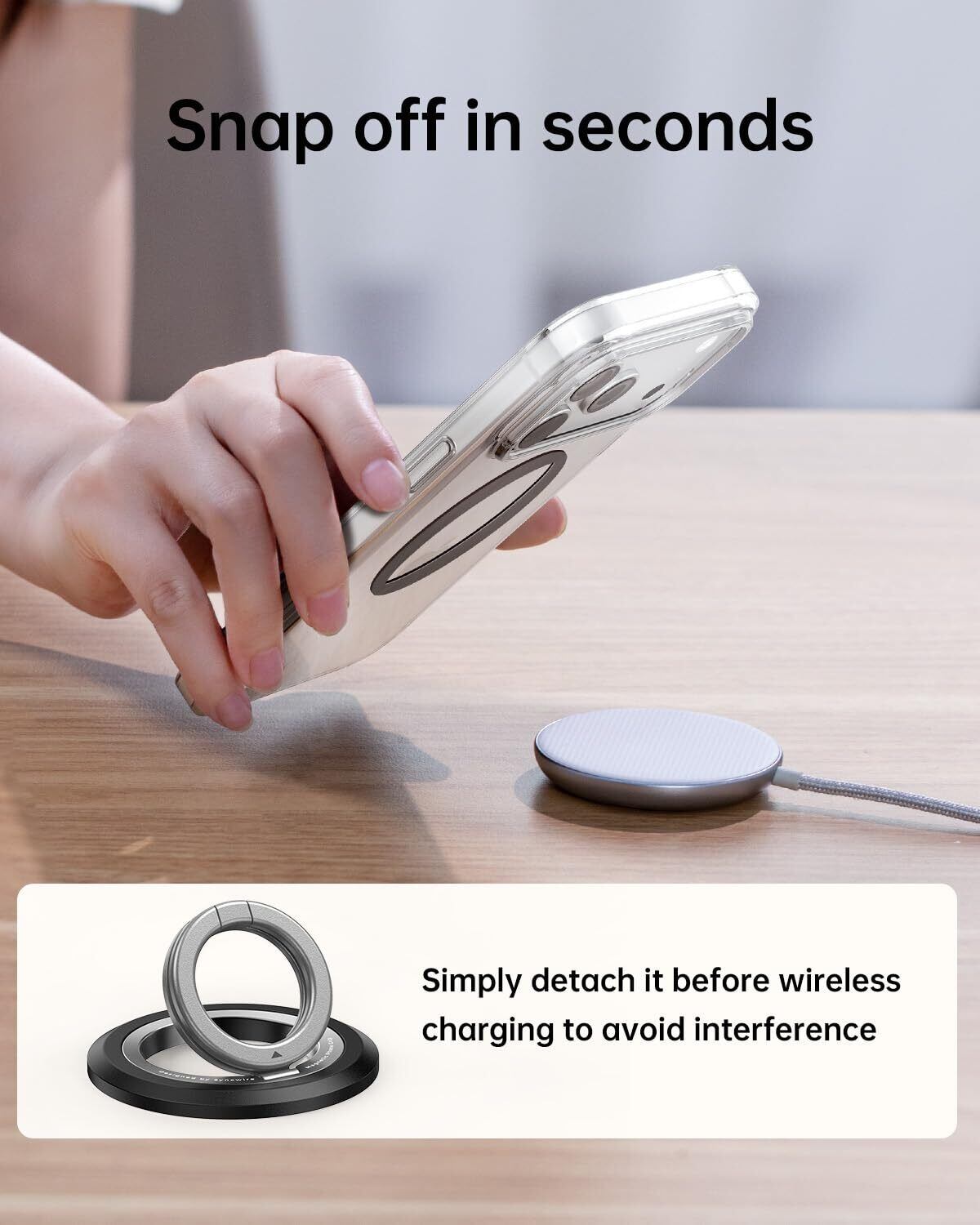 【超強力磁石&MagSafe対応】 Syncwire MagSafeフォンリングスタンドは、N52 NdFeBマグネットを使用しており、MagSafe対応のスマートフォンやケースにシームレスに接続できます。また、付属のマグネットリングを使用することで、非MagSafeデバイスにも普遍的な互換性を提供します。付属の金属リングと一緒に使用すると、磁力が5倍強化されます。
